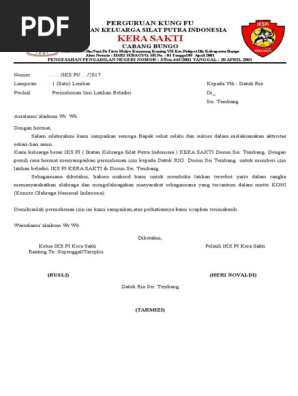 Contoh Surat Permohonan Izin Tempat Latihan Iks Pi